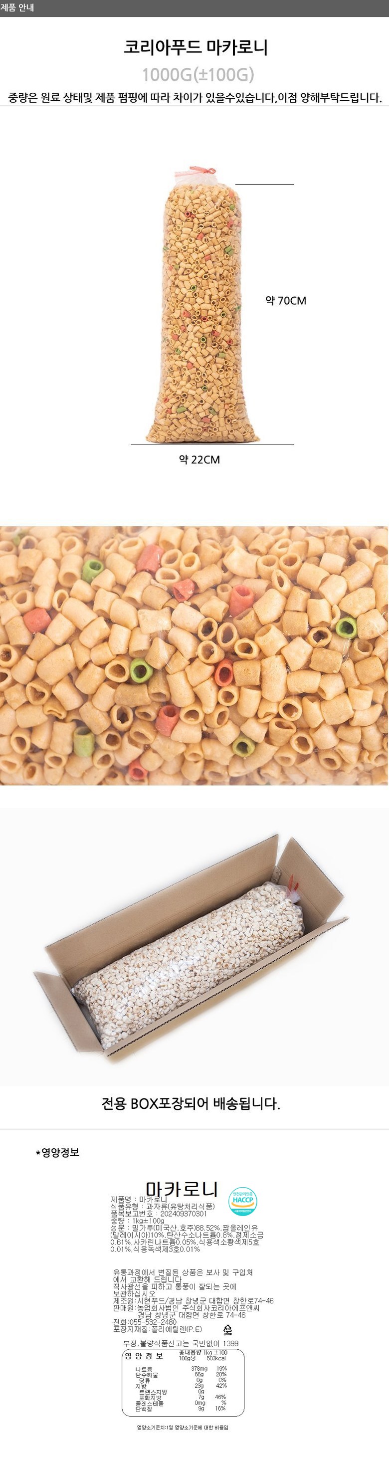 ✔ 코리아푸드 마카로니 대롱과자 box포장