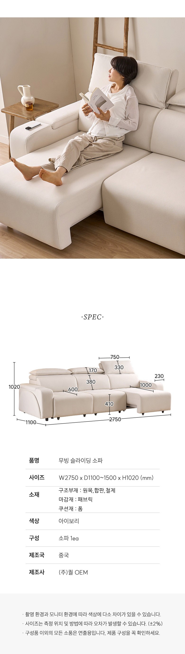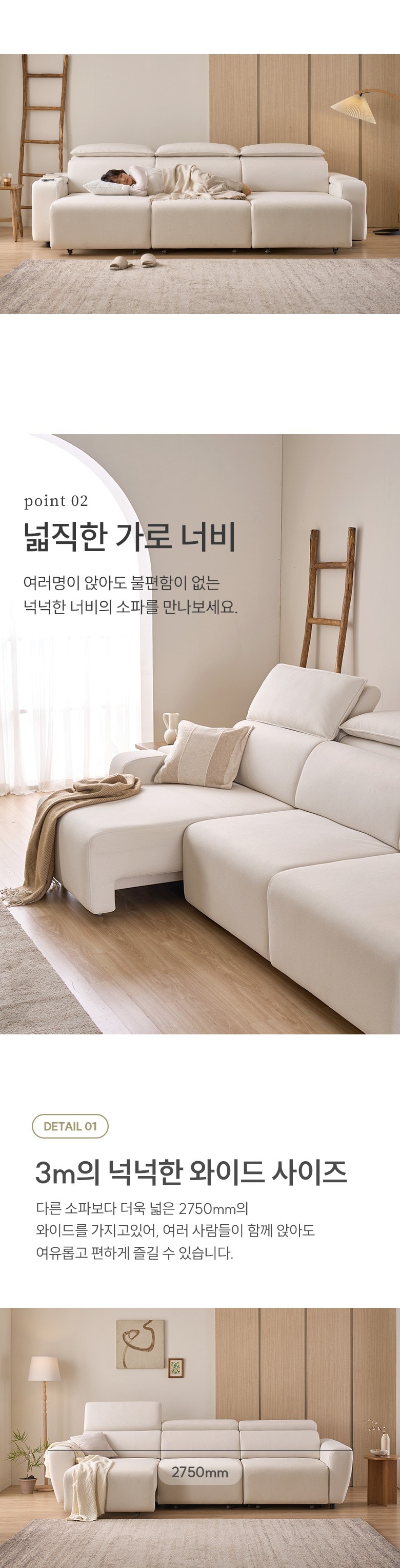 ✔ 가로길이 2750mm의 넉넉한 사이즈로 거실 메인 소파로 두기 좋음