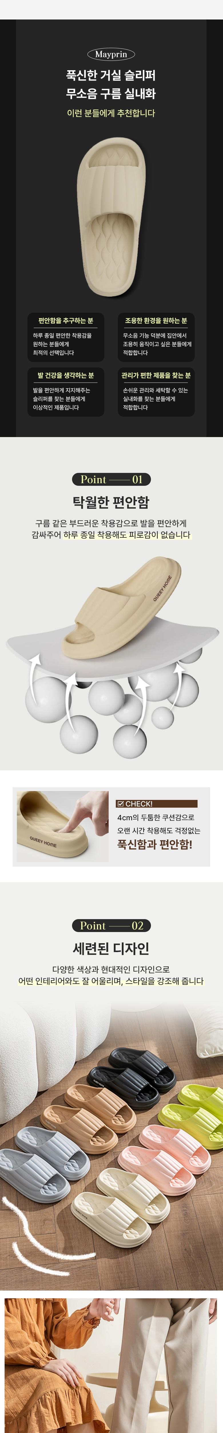 참고 상품: 메이프린 푹신한 거실 슬리퍼 무소음 구름 실내화