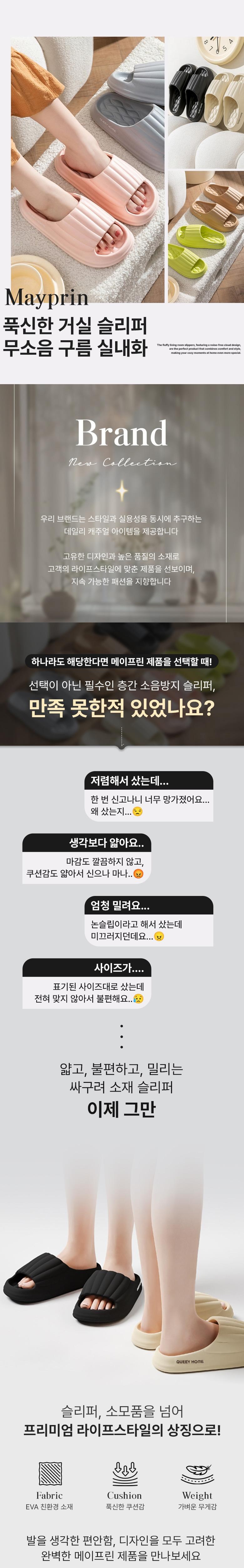 ✔ 메이프린 푹신한 거실 슬리퍼 무소음 구름 실내화