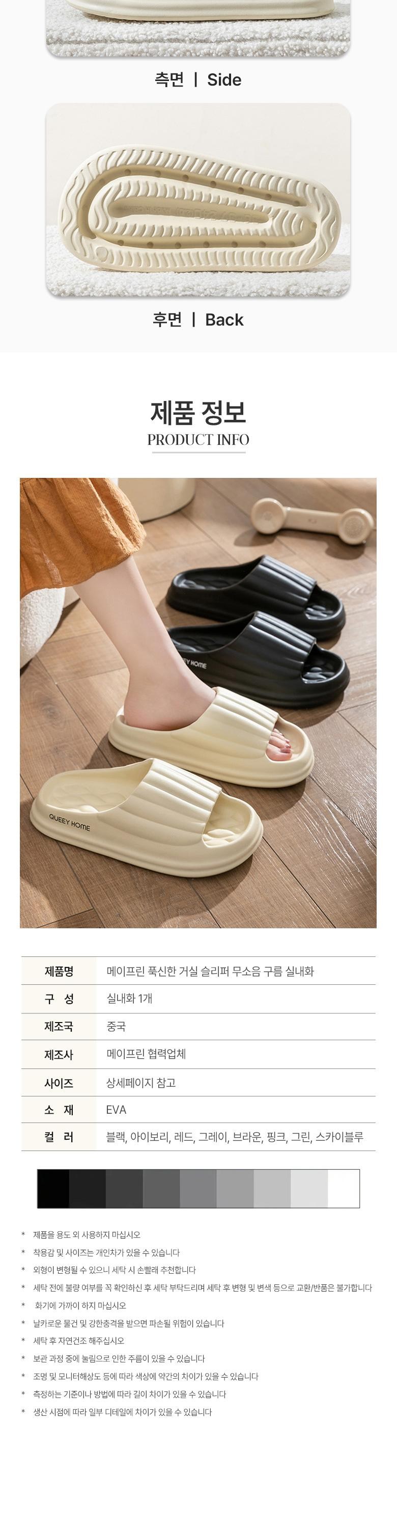 상품명: 메이프린 푹신한 거실 슬리퍼 무소음 구름 실내화